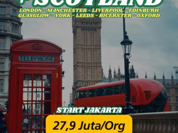Paket UK Inggris + Scotland (London-Manchester-Liverpool-Edinburh-Glasglow-York-Leeds-Bicerster-Oxford)